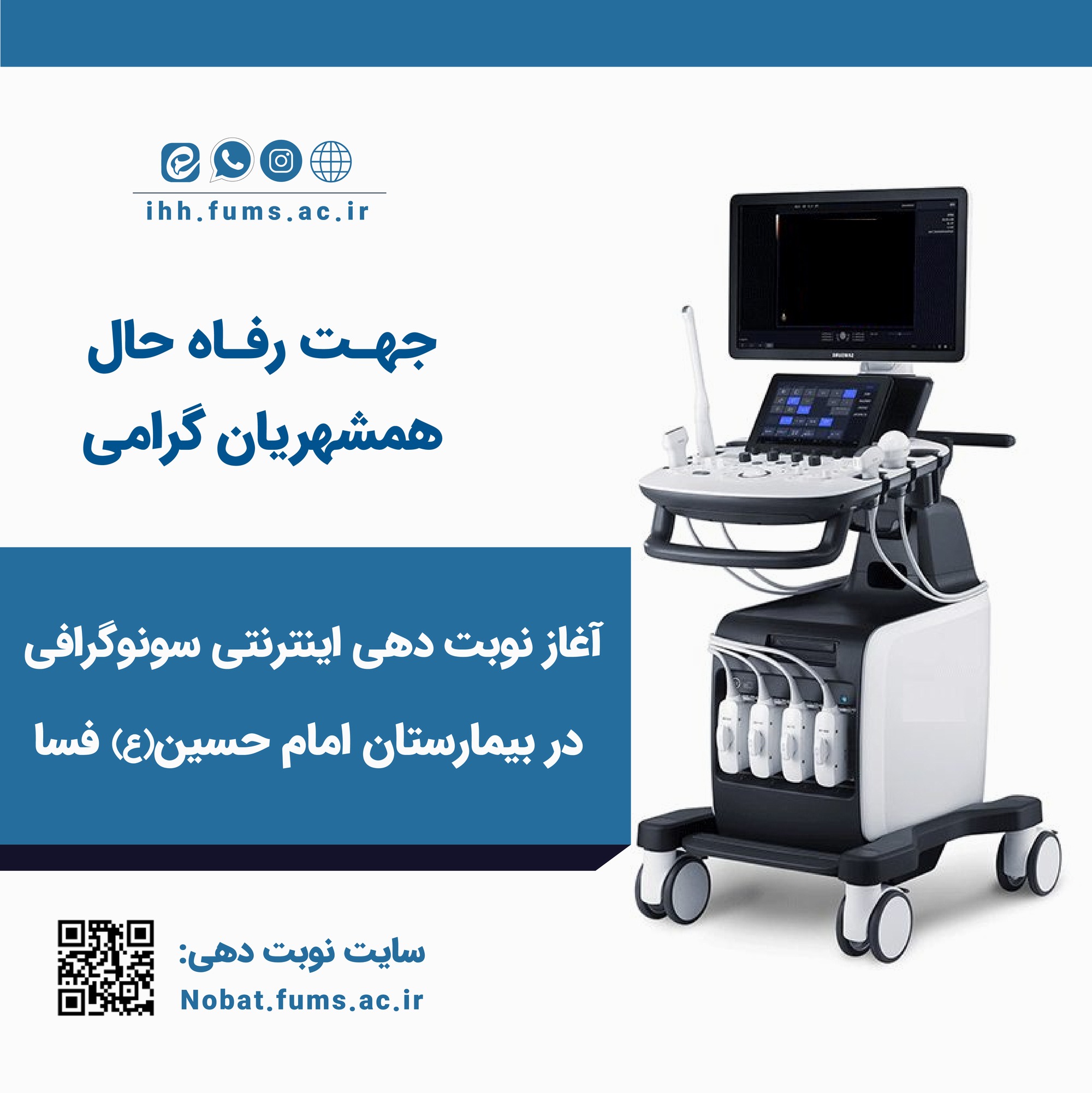 آغاز نوبتدهی اینترنتی سونوگرافی در بیمارستان تخصصی و فوق تخصصی امام حسین(ع) فسا