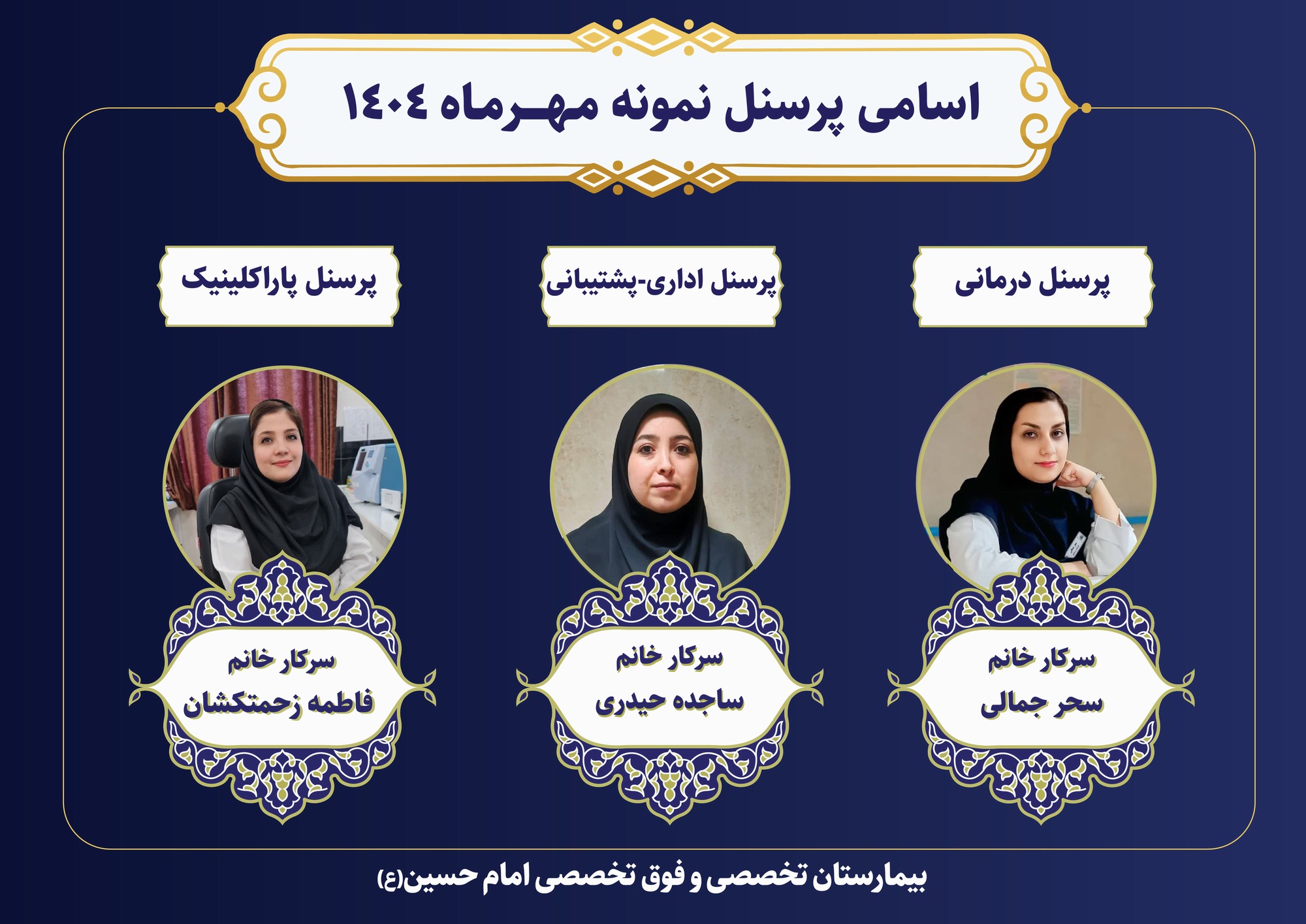 اعلام اسامی پرسنل نمونه مهر ماه ۱۴۰۴ بیمارستان امام حسین (ع)